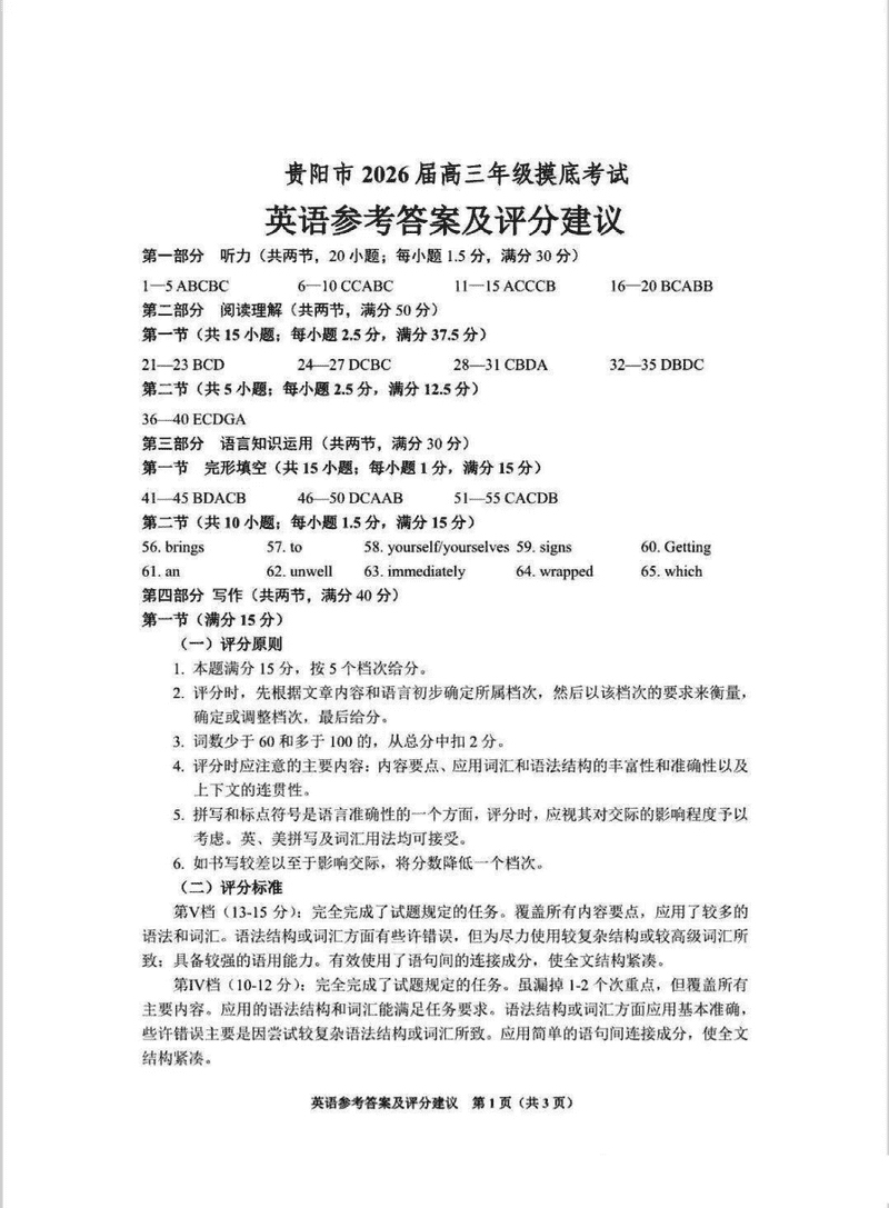 贵阳市、铜仁市2026届高三9月摸底考英语考试已于近日开考,为方便考生考后及时查看考试情况,查漏补缺、弥补不足,本文整理了试题答案解析相关信息!