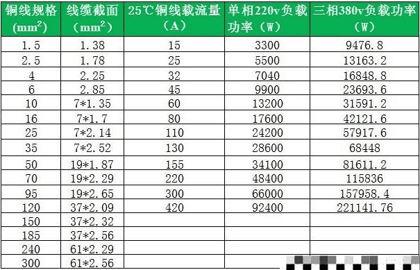铜线平方对应的功率是根据电流算出来的,具体分两种算法:
