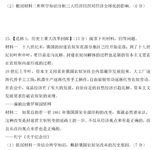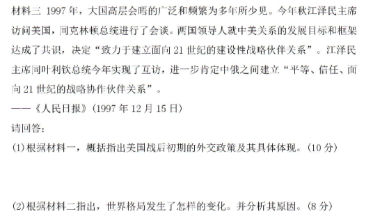 2020年全国高考文综押题预测历史试题