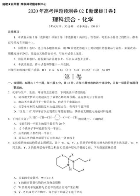 2020全国高考理科综合模拟预测化学试题