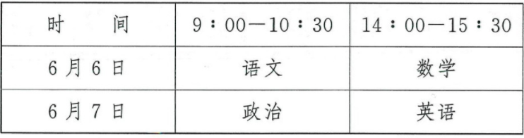 考试时间及科目
