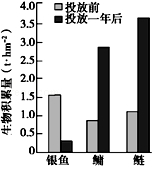 (3)浮游动物以藻类为食,银鱼主要以浮游动物为食,由图可知,将鲢、鳙鱼苗以一定比例投放到该湖泊后,造成银鱼生物积累量 ,引起该变化的原因是 。