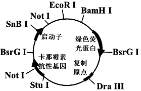 (2)DraⅢ,SnaBⅠ等是质粒上不同限制酶的切割位点。为获得HuC基因﹣﹣绿色荧光蛋白基因的表达载体,需要对HuC基因和质粒选用图中的 酶进行切割,这样做的原因是 。不选择NotⅠ酶切割的原因是 。