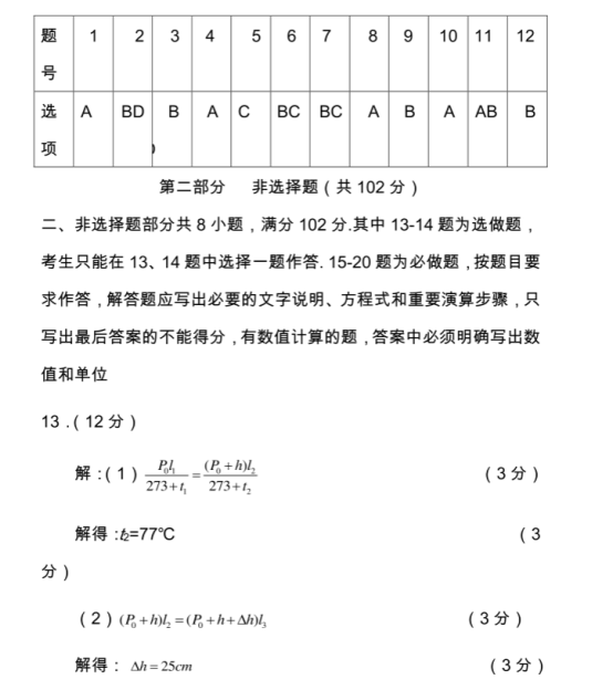 2021年全国乙卷理综真题答案解析