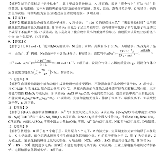 2021年全国乙卷理综真题答案解析