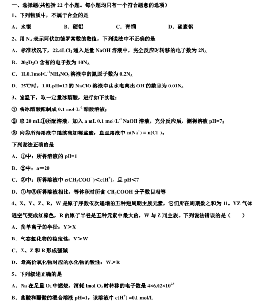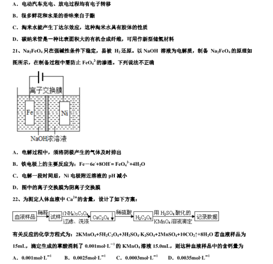 2020江苏南通高三化学模拟试题