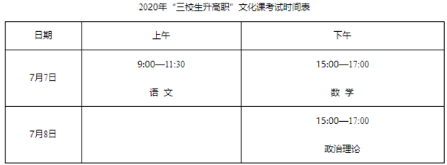 “三校生升高职”考试招生计划分“普通类”“单列类”两个类型。“三校生升高职”文化课考试科目为:语文、数学、政治理论。所有科目均使用国家通用语言试卷并使用国家通用语言文字答卷。