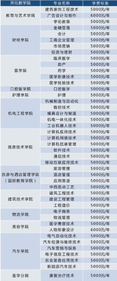 湖北职业技术学院各专业学费收费标准