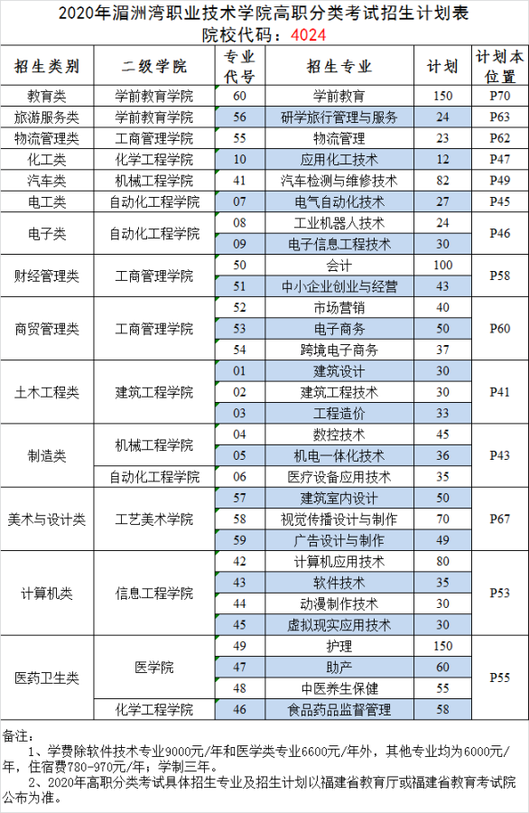 学费依据来源:2020年湄洲湾职业技术学院高职分类考试招生计划表(http://zs.mzwu.edu.cn/InfoView-130-36600.html)