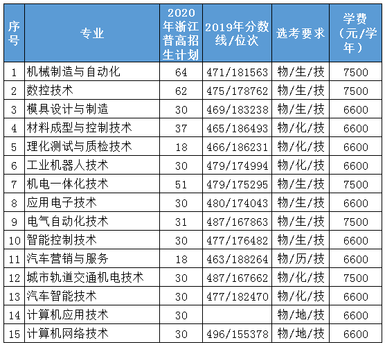 学费数据来源:浙江机电职业技术学院2020年面向15个省市自治区招生计划(http://jdzsw.xihuju.com/content/detail.php?id=1932&sid=6&cid=835)