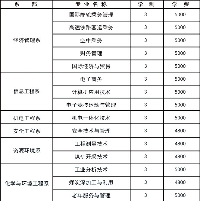 黑龙江能源职业学院各专业学费收费标准