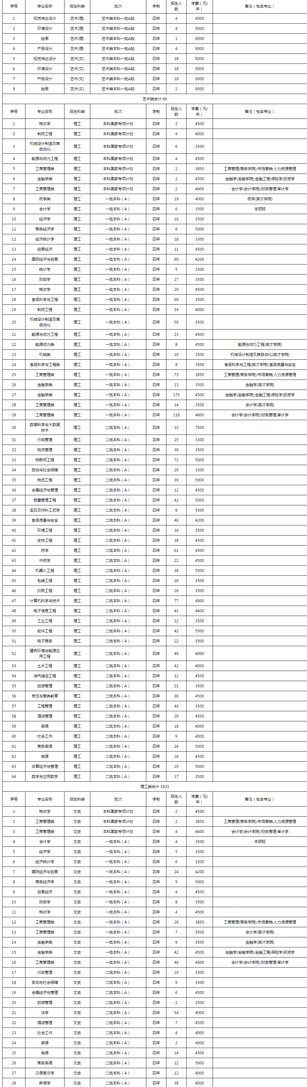 哈尔滨商业大学各专业学费收费标准