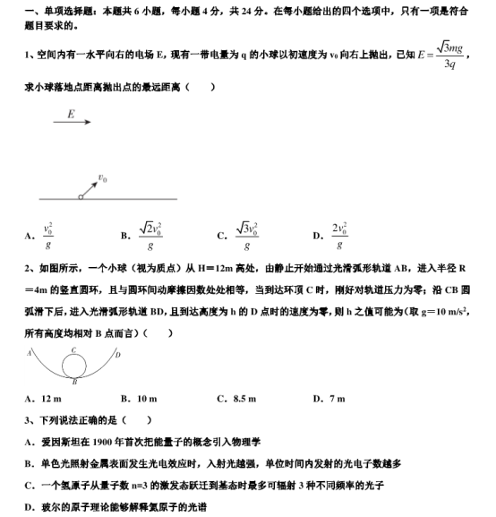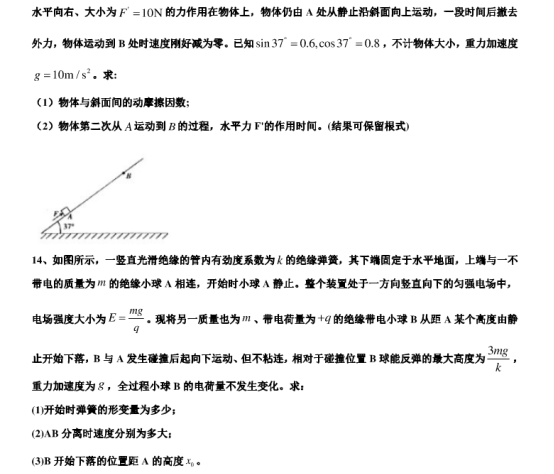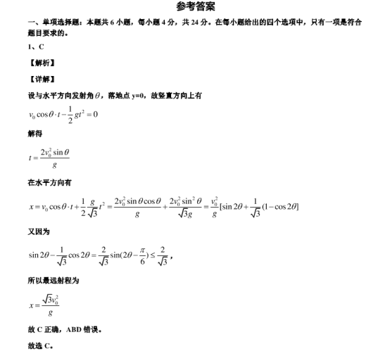 浙江强基联盟2024年10月高三联考物理试题及答案