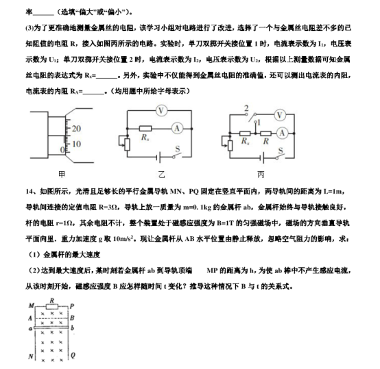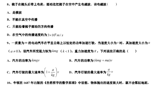 浙江强基联盟2024年10月高三联考物理试题及答案