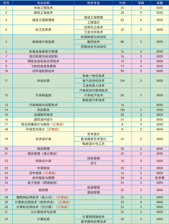 唐山工业职业技术学院各专业学费收费标准