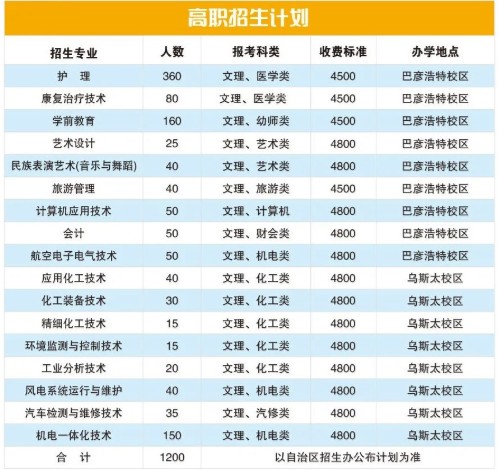 阿拉善职业技术学院学费