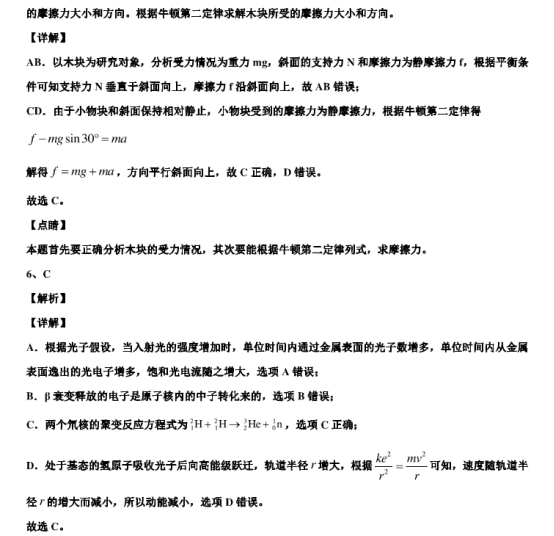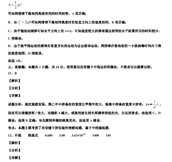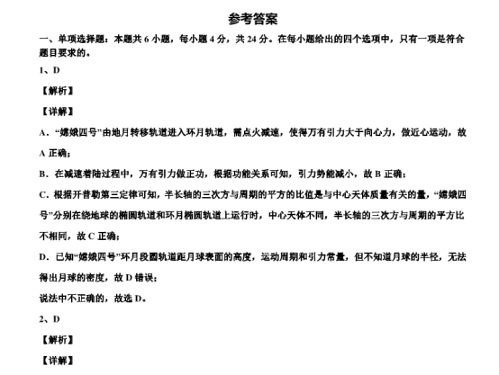 2021年全国乙卷理综真题答案解析