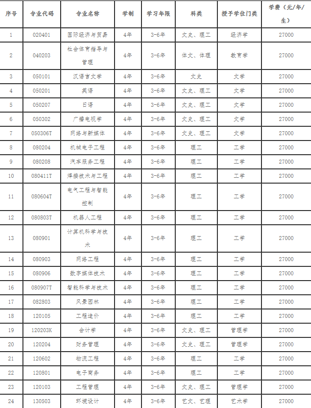辽宁理工学院学费各专业收费标准