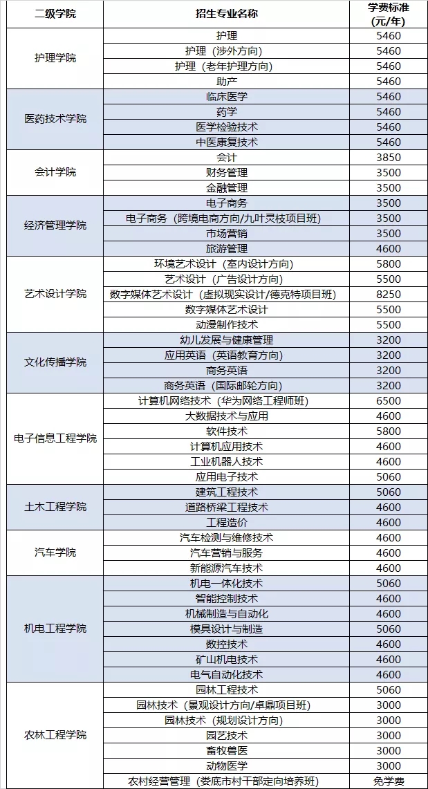 学费数据来源:娄底职院2020年单独招生简章(https://mp.weixin.qq.com/s/ey1tNXOIXgA3SP_ixo82MA)