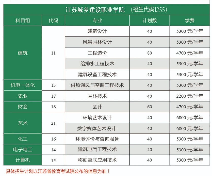 学费数据来源:2020年江苏城乡建设职业学院普高招生章程(https://gaokao.chsi.com.cn/zsgs/zhangcheng/listVerifedZszc--infoId-2729014096,method-view,schId-1668760912.dhtml)