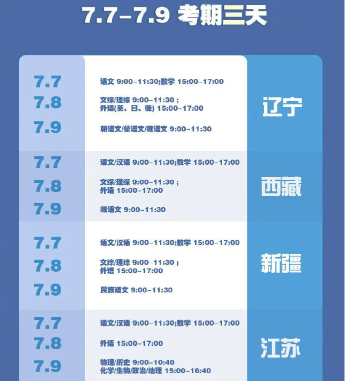 2020高考倒计时2天,下面小编整理了2020年31省区市高考时间表汇总,供大家参考,愿每一份努力都不被辜负,祝各位考生金榜题名。