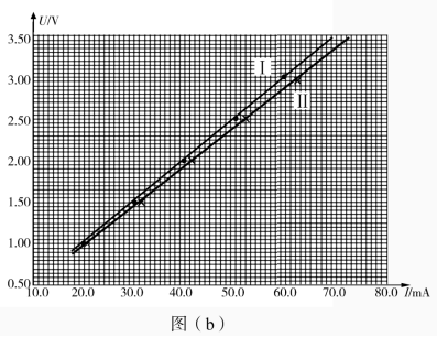 (2)根据所用实验器材和图(b)可判断,由图线________(填“I”或“II”)得到的结果更接近待测电阻的真实值,结果为________Ω(保留1位小数)。
