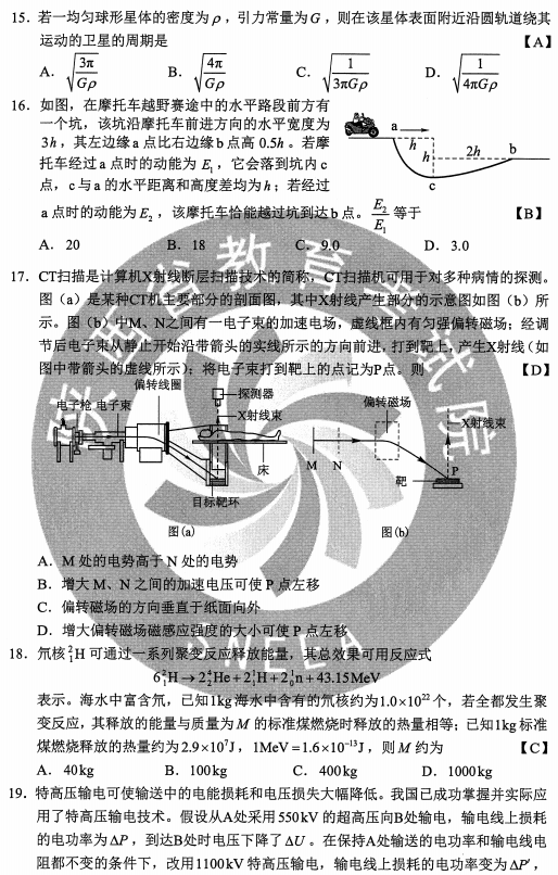 2020年青海高考理综试题及答案解析