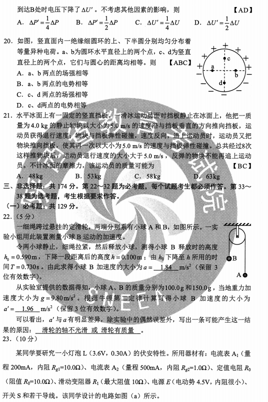 2020年辽宁高考理综试题及答案解析