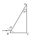 (2)(10分)直角棱镜的折射率n=1.5,其横截面如图所示,图中∠C=90°,∠A=30°。截面内一细束与BC边平行的光线,从棱镜AB边上的D点射入,经折射后射到BC边上。