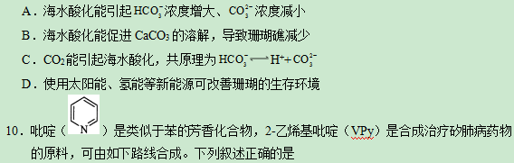 9.二氧化碳的过量排放可对海洋生物的生存环境造成很大影响,其原理如下图所示。下列叙述错误的是