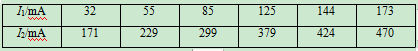 (3)实验时,调节滑动变阻器,使开关闭合后两电流表的示数为零。逐次改变滑动变阻器滑片位置并读取相应的I1和I2。所得实验数据在下表中给出。