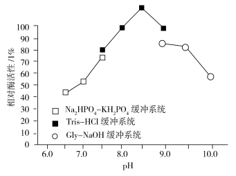 (3)本实验中,研究人员在确定A3的最适pH时使用了三种组分不同的缓冲系统,结果如图所示。某同学据图判断,缓冲系统的组分对酶活性有影响,其判断依据是______________。
