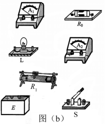 某同学要研究一小灯泡L(3.6 V,0.30 A)的伏安特性。所用器材有:电流表A1(量程200 mA,内阻Rg1=10.0 Ω),电流表A2(量程500 mA,内阻Rg2=1.0 Ω)、定值电阻R0(阻值R0=10.0 Ω)、滑动变阻器R1(最大阻值10 Ω)、电源E(电动势4.5 V,内阻很小)、开关S和若干导线。该同学设计的电路如图(a)所示。