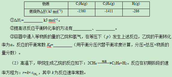 (1)乙烷在一定条件可发生如下反应:C2H6(g)= C2H4(g)+H2(g) ΔH,相关物质的燃烧热数据如下表所示:
