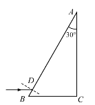 (2)(10分)直角棱镜的折射率n=1.5,其横截面如图所示,图中∠C=90°,∠A=30°。截面内一细束与BC边平行的光线,从棱镜AB边上的D点射入,经折射后射到BC边上。