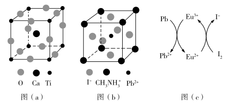 (5)用上述金属卤化物光电材料制作的太阳能电池在使用过程中会产生单质铅和碘,降低了器件效率和使用寿命。我国科学家巧妙地在此材料中引入稀土铕(Eu)盐,提升了太阳能电池的效率和使用寿命,其作用原理如图(c)所示,用离子方程式表示该原理_______、_______。