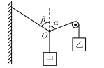 17.如图,悬挂甲物体的细线拴牢在一不可伸长的轻质细绳上O点处;绳的一端固定在墙上,另一端通过光滑定滑轮与物体乙相连。甲、乙两物体质量相等。系统平衡时,O点两侧绳与竖直方向的夹角分别为α和β。若α=70°,则β等于