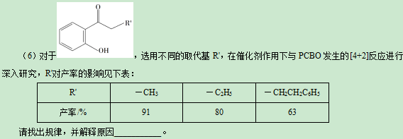 (6)随着R'体积增大,产率降低;原因是R'体积增大,位阻增大