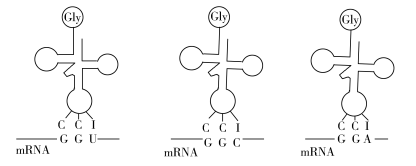 3.细胞内有些tRNA分子的反密码子中含有稀有碱基次黄嘌呤(I),含有I的反密码子在与mRNA中的密码子互补配对时,存在如图所示的配对方式(Gly表示甘氨酸)。下列说法错误的是