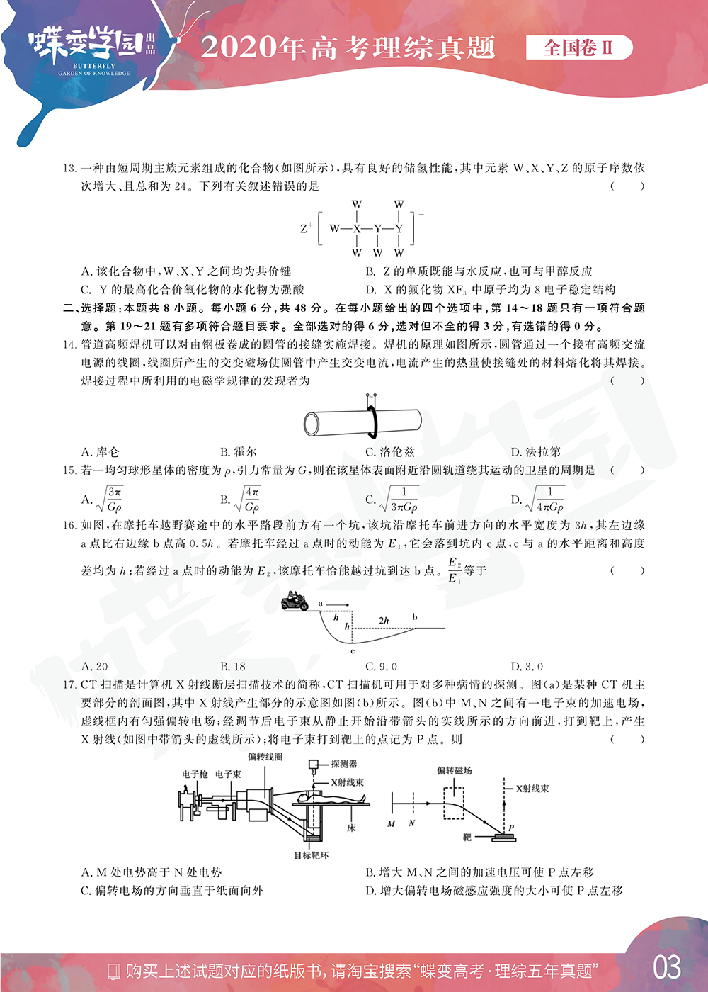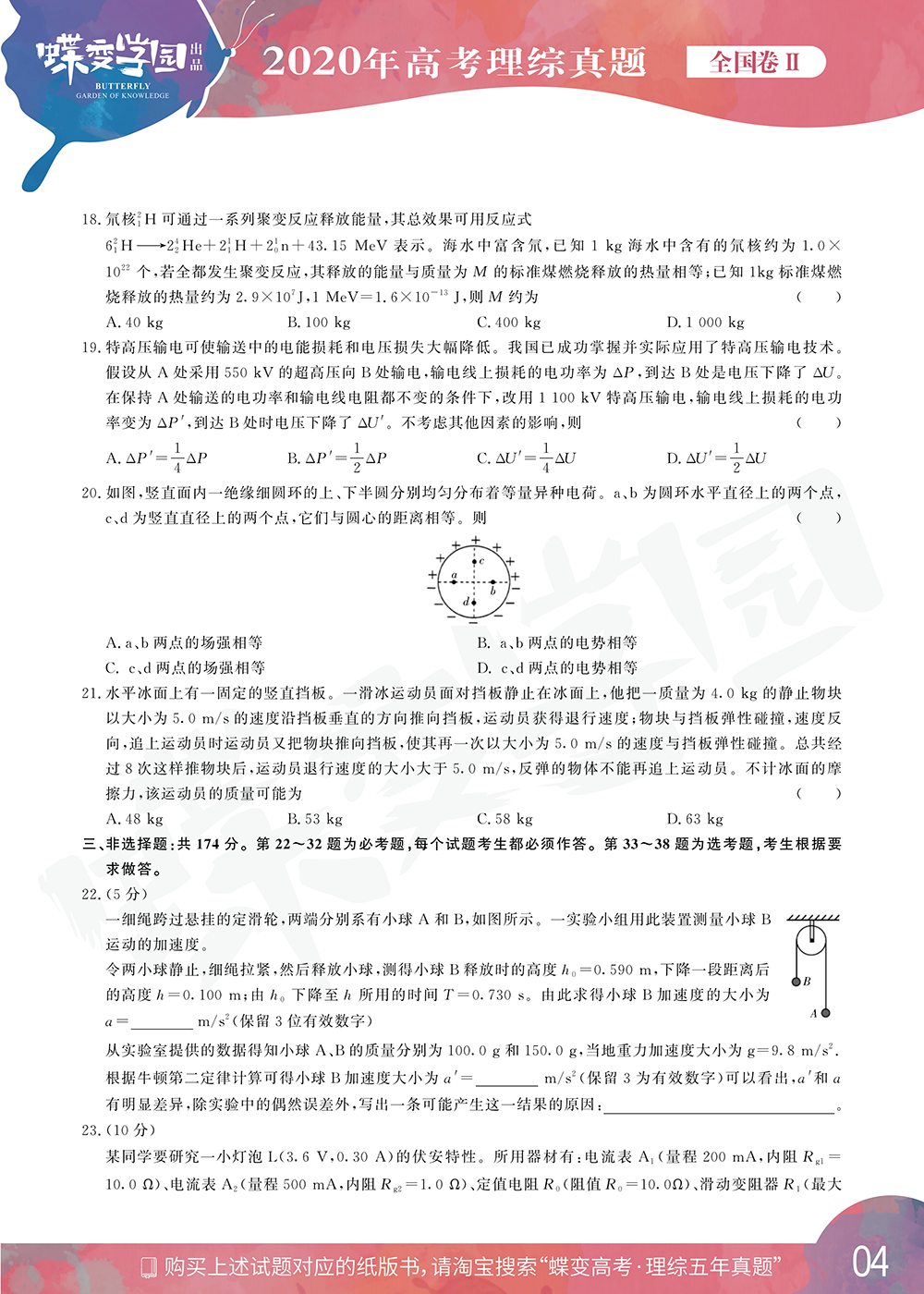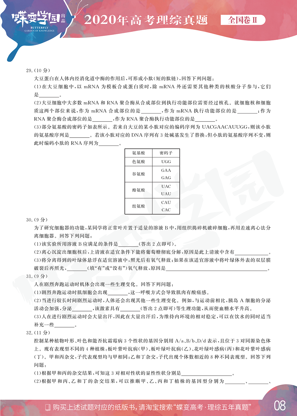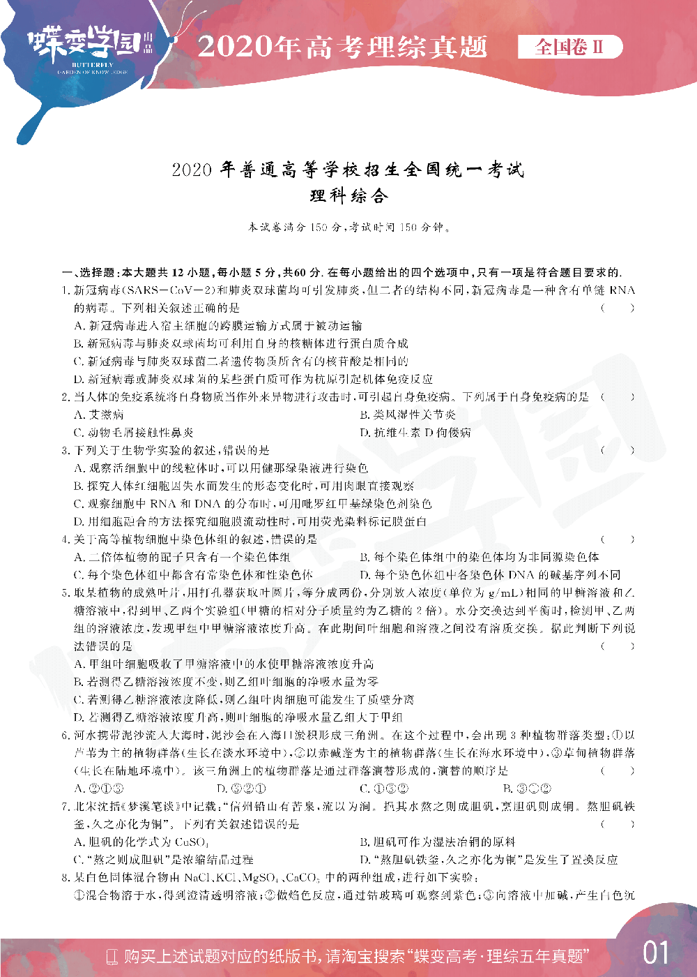 2020年全国2卷高考理综真题试卷【高清精校版】 时间:2020-07-10 10:49 理综试题 本文档整理了【高清精校版】2020年全国2卷高考理综真题。点击文末的下载,可下载PDF格式的文件,便于打印和存储。