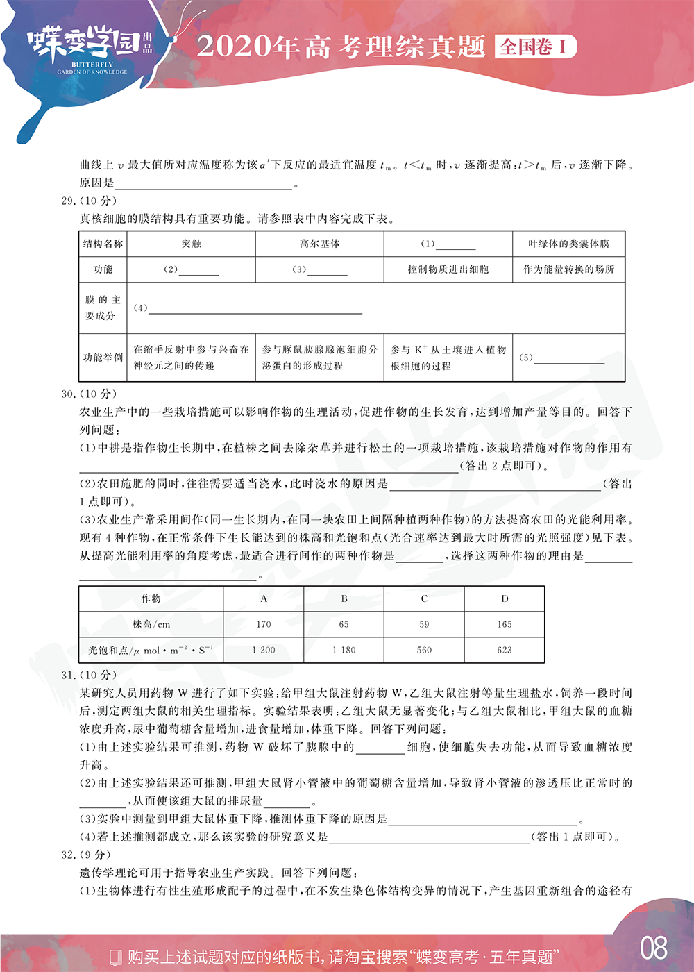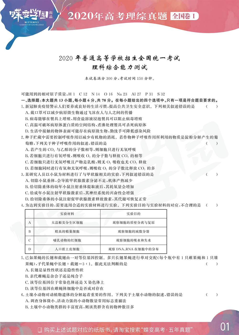 2020年全国1卷高考理综真题试卷【高清精校版】 时间:2020-07-10 11:12 理综试题 本文档整理了【高清精校版】2020年全国1卷高考理综真题。点击文末的下载,可下载PDF格式的文件,便于打印和存储。