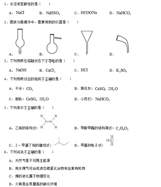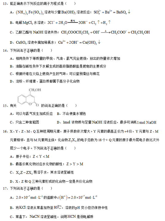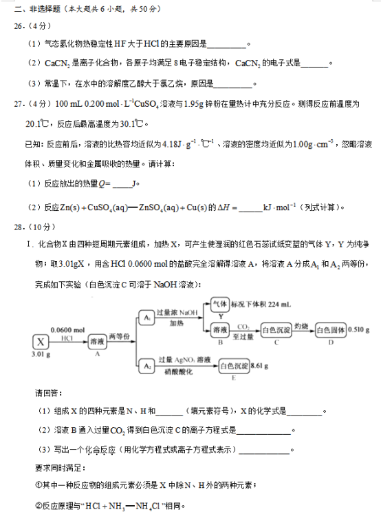 2020浙江高考化学试题【图片版】