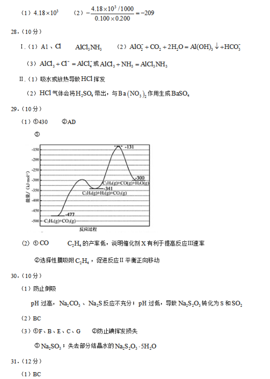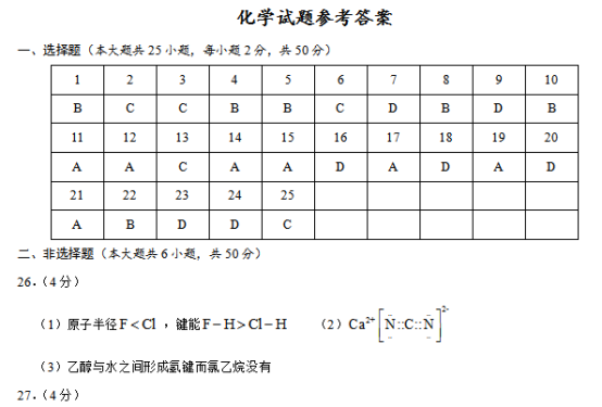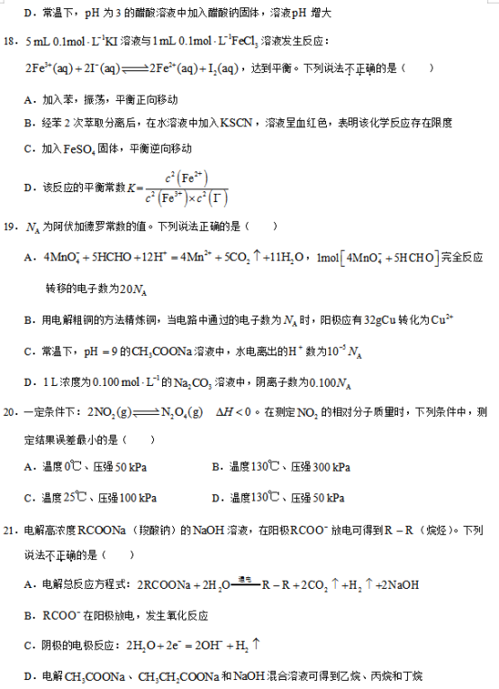 2020浙江高考化学试题及答案解析