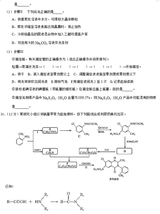 可能用到的相对原子质量:H 1 C 12 N 14 O 16 Na 23 Mg 24 Al 27 Si 28 S 32 Cl 35.5 K 39 Ca 40 Mn 55 Fe 56 Cu 64 Zn 65 Ag 108 I 127 Ba 137