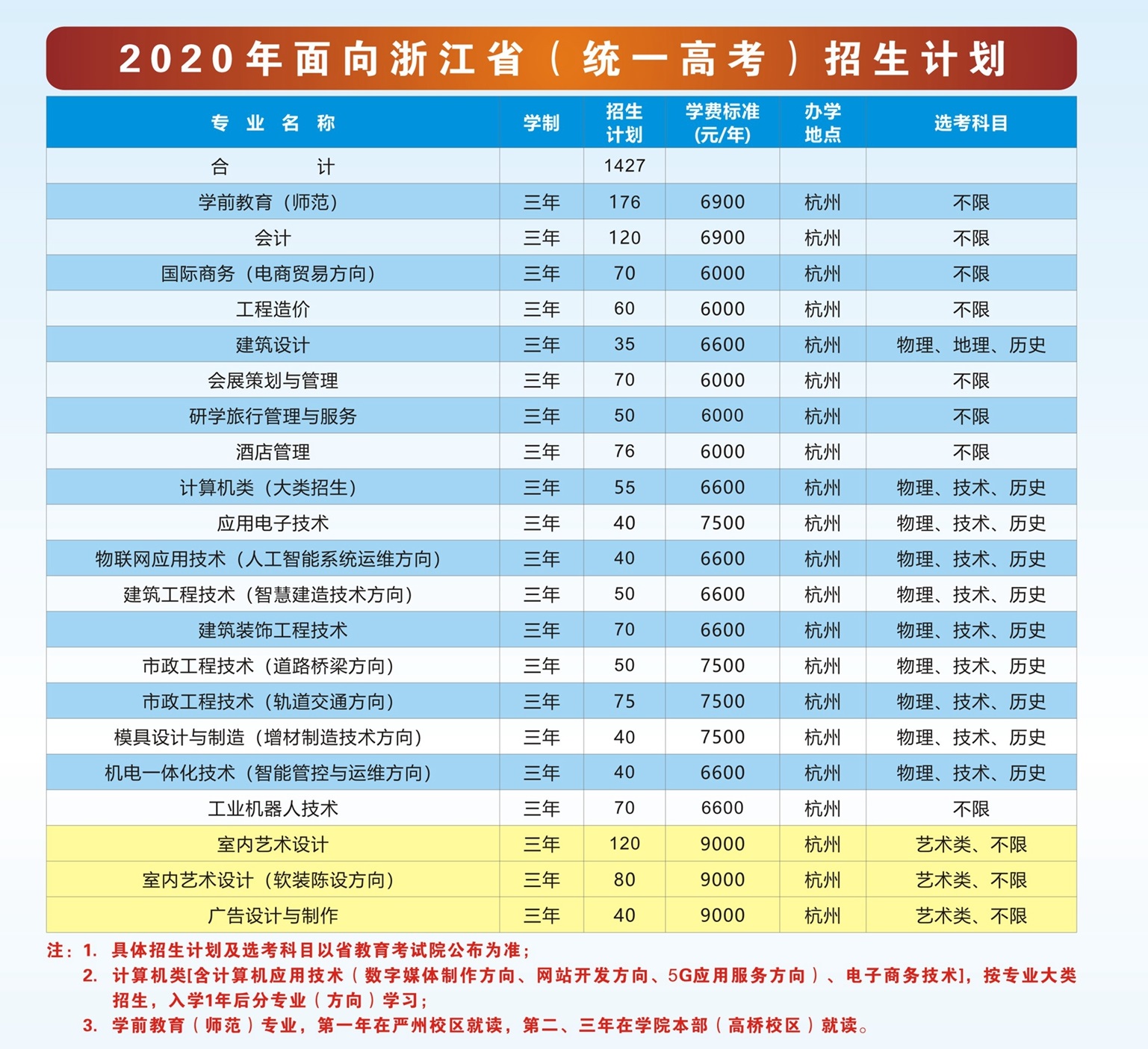 杭州市特需专业:学前教育(师范)、模具设计与制造、会计。