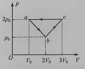 6.一定质量的理想气体从状态a开始,经a→b、b→c、c→a三个过程后回到初始状态a,其p-V图像如图所示。已知三个状态的坐标分别为a(V0, 2p0)、 b(2V0,p0)、c(3V0, 2p0) 以下判断正确的是