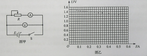 (1)该小组按照图甲所示的电路进行实验,通过调节滑动变阻器阻值使电流表示数逐渐接近满偏,记录此过程中电压表和电流表的示数,利用实验数据在U-I坐标纸上描点,如图乙所示,结果发现电压表示数的变化范围比较小,出现该现象的主要原因是___。(单选,填正确答案标号)