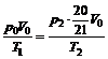p1=p0、T1=450 K、V1=V2、T2=300 K、V2=20V0/21 ①