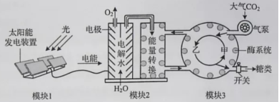 (1)该系统中执行相当于叶绿体中光反应功能的模块是________________,模块3中的甲可与CO2结合,甲为________________。