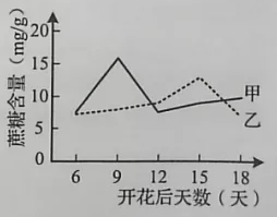 C.15~18 天曲线乙下降的主要原因是蔗糖被水解后参与纤维素的合成